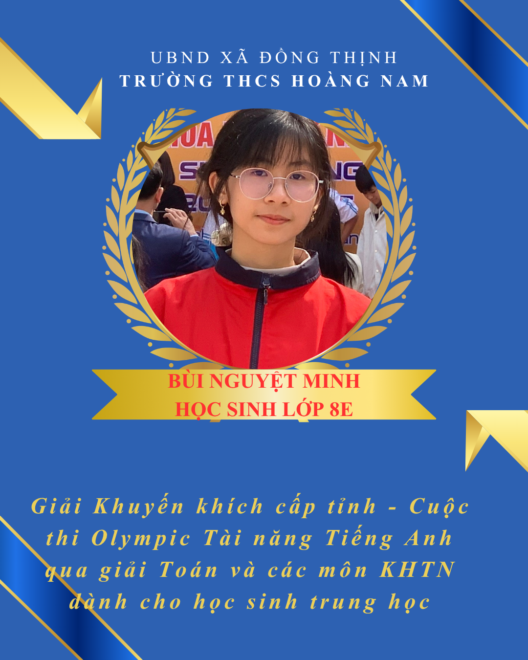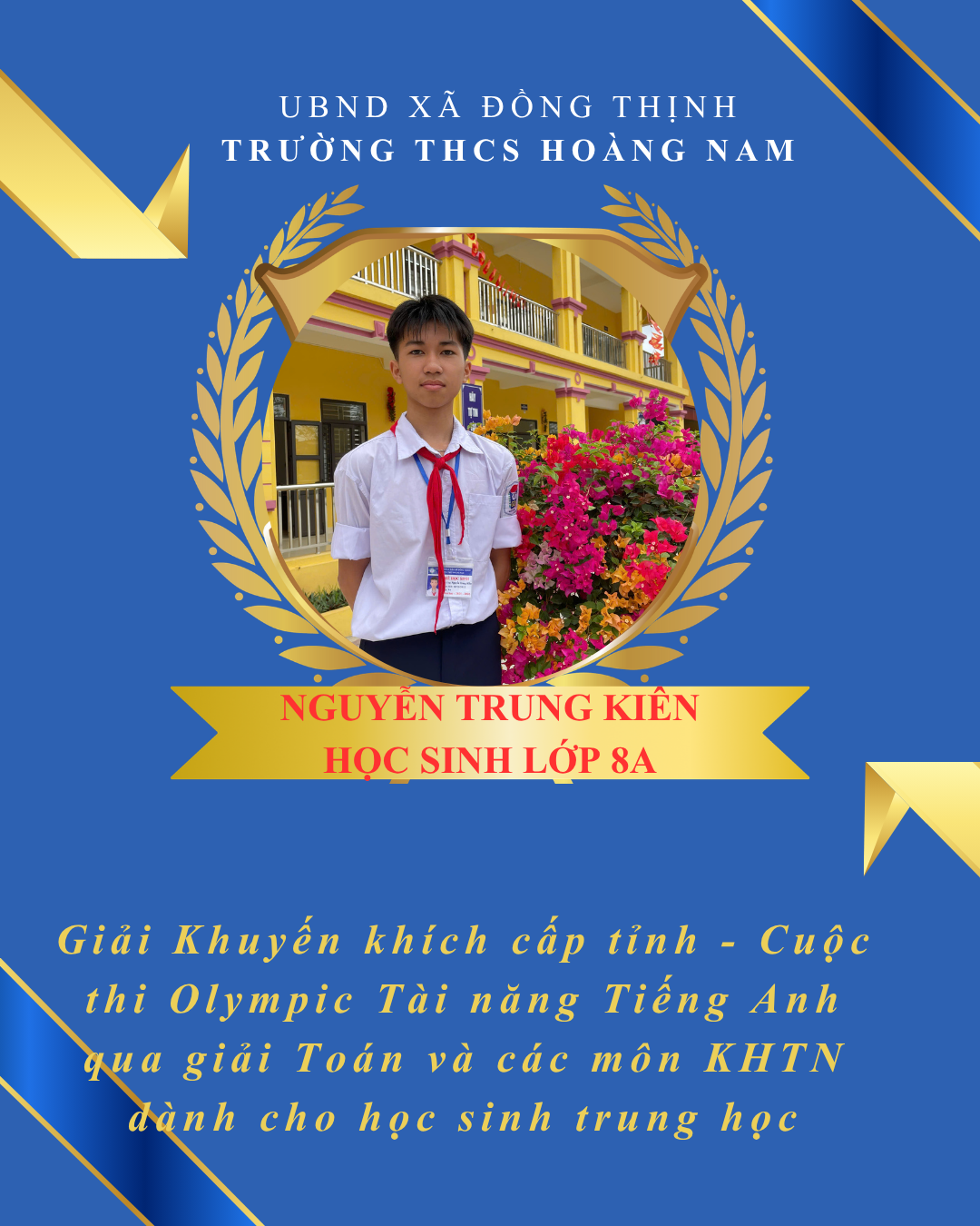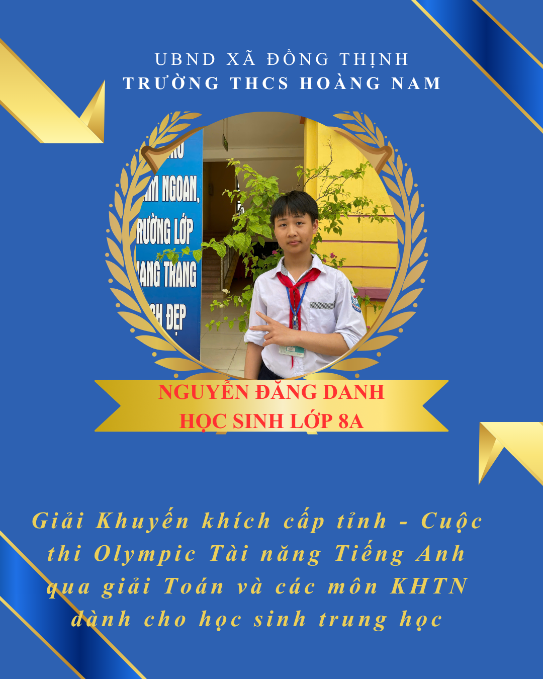 Ghi nhận những thành tích đáng khích lệ đã đạt được trong năm học 2025 – 2026, Trường THCS Hoàng Nam trân trọng tuyên dương và vinh danh các em học sinh đã xuất sắc đạt thành tích cao trong Kỳ thi chọn HSG THCS cấp tỉnh và Cuộc thi Olympic Tài năng Tiếng Anh qua giải Toán và các môn KHTN dành cho học sinh trung học.